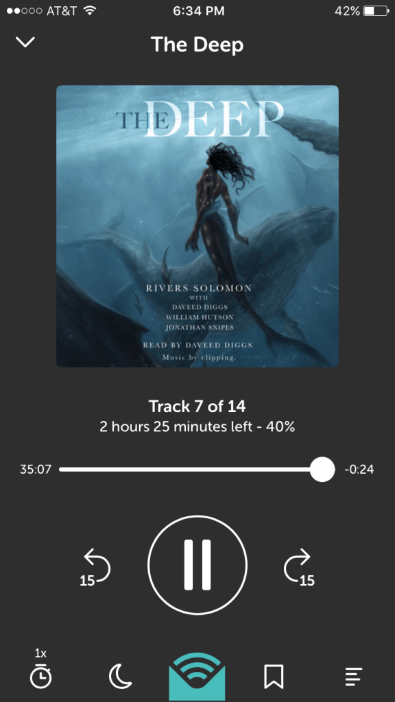 In the end, The Deep is an interesting, thought-provoking novella about history and legacy and one’s place in the world. The characters are good, the writing pretty, and the themes wonderful. It’s a work that merits discussion and rereads, and exploration of its sources, as well as the tragic history that inspired all these artists. And the audio version, which I listened to, is great; Daveed Diggs does a great job!