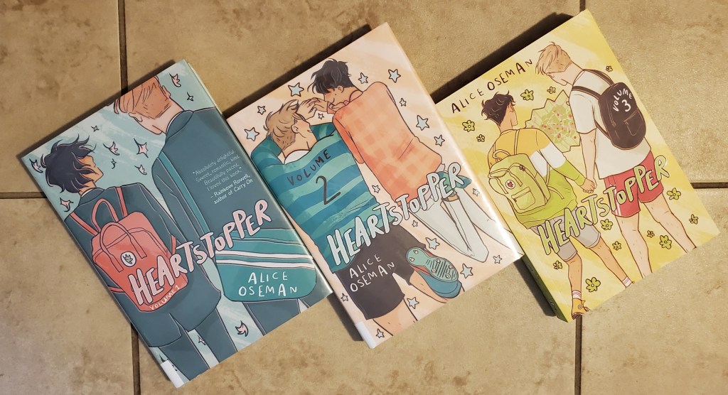 In the end, the first three volumes of the Heartstopper series are uplifting and sweet, though not without serious moments. I think some aspects of the story could be lingered on more, but it’s not a complete series, so hopefully I’ll get my wish. There’s humor and heart, strength and support, and it’s amazing. The characters are well written, and the story is just so cute! (I know I said that already, but it bears repeating.) I can’t wait for volume four!