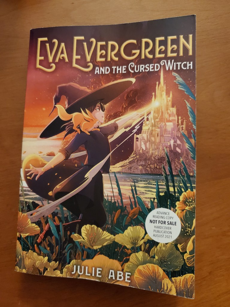 I received an advance reader’s copy (ARC) of Eva Evergreen and the Cursed Witch by Julie Abe. Since this version is just a proof and not the final version, I won’t quote directly and will keep my comments general.
