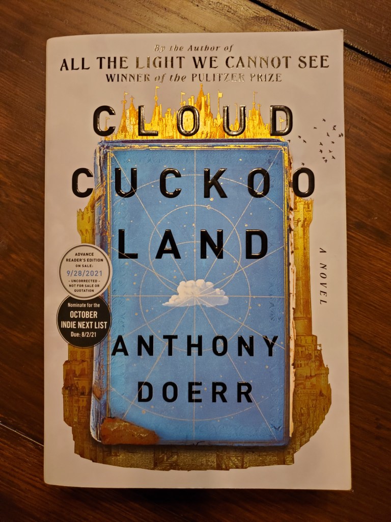 I received an advance reader’s copy (ARC) of Cloud Cuckoo Land by Anthony Doerr. Since this version is just a proof and not the final version, I won’t quote directly and will keep my comments general.