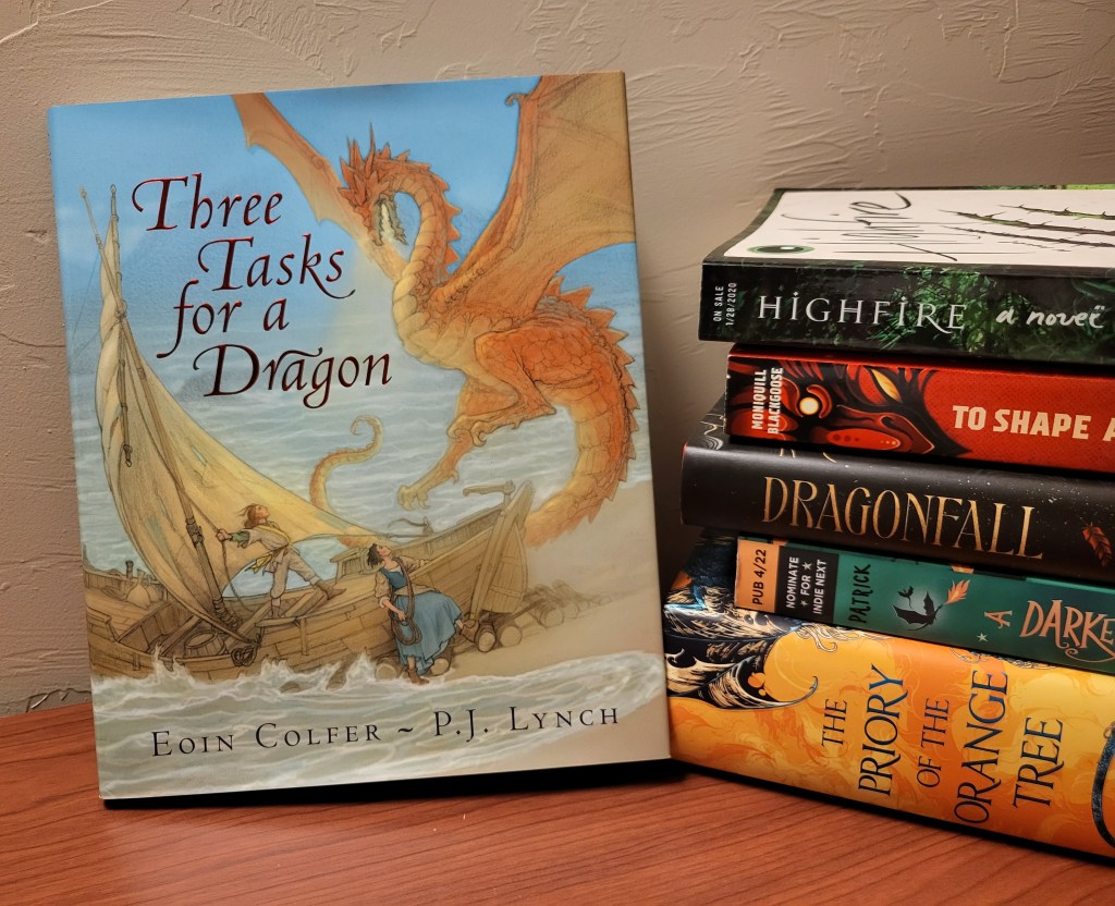 In Three Tasks for a Dragon, Prince Lir hasn’t particularly distinguished himself in his kingdom. He’s meek, isn’t a fighter, and can’t command the wolfhounds that his royal predecessors have been able to in the past. So his stepmother convinces him to prove himself by rescuing a maiden from a dragon on a distant island. So off Lir goes, and when he arrives, he finds a young woman named Cethlenn working for the great dragon Lasvarg. Lir speaks with Lasvarg, who agrees that if Lir completes three tasks for him, he will let Cethlenn go free. But the longer Lir stays, the more he realizes that not all is as he believed—about dragons, about his kingdom, and about himself.