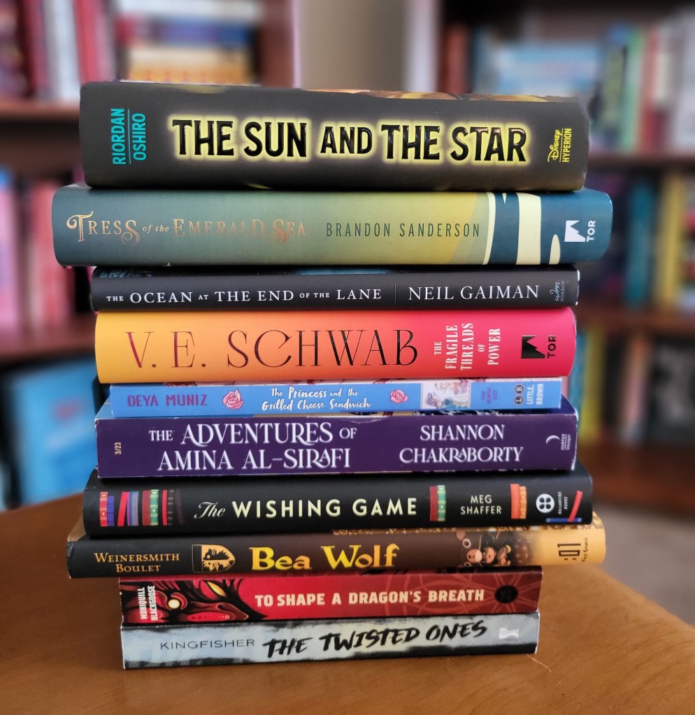 As for any reading goals, I have had a horrible track record (despite my last year’s top ten post, I only read one new Sanderson and Schwab each). Maybe my goal this year will be to keep up with my ever-teetering pile of not-yet-published ARCs, because that’s a constant source of pressure for me. It would be nice to feel proactive about it for once.